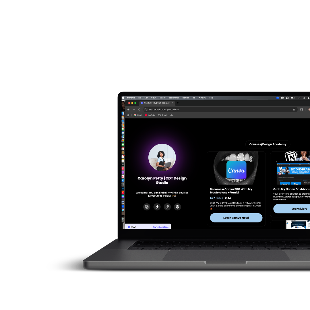 I created CDT Design Studio to help other people— create BRANDS, not just another business. I want to help people build their dream brands so that they can live their dream LIVES! A thriving business is more than a logo and a product or service. A thriving business is one with a story, a why, and a strategy behind it!